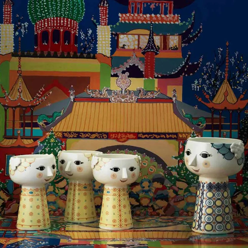 Eva vase i gule nyanser fra Bjørn Wiinblad. Den flotte vasen i blankglasert porselen er utmerket til mindre blomsterbuketter, og med sitt ikoniske design skaper den et flott uttrykk til hjemmet. Vasen er 15 cm høy og måler 10 cm i diameter.