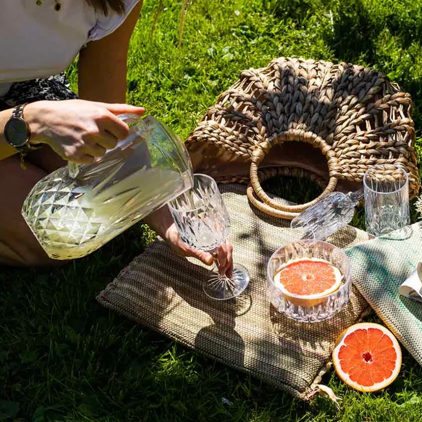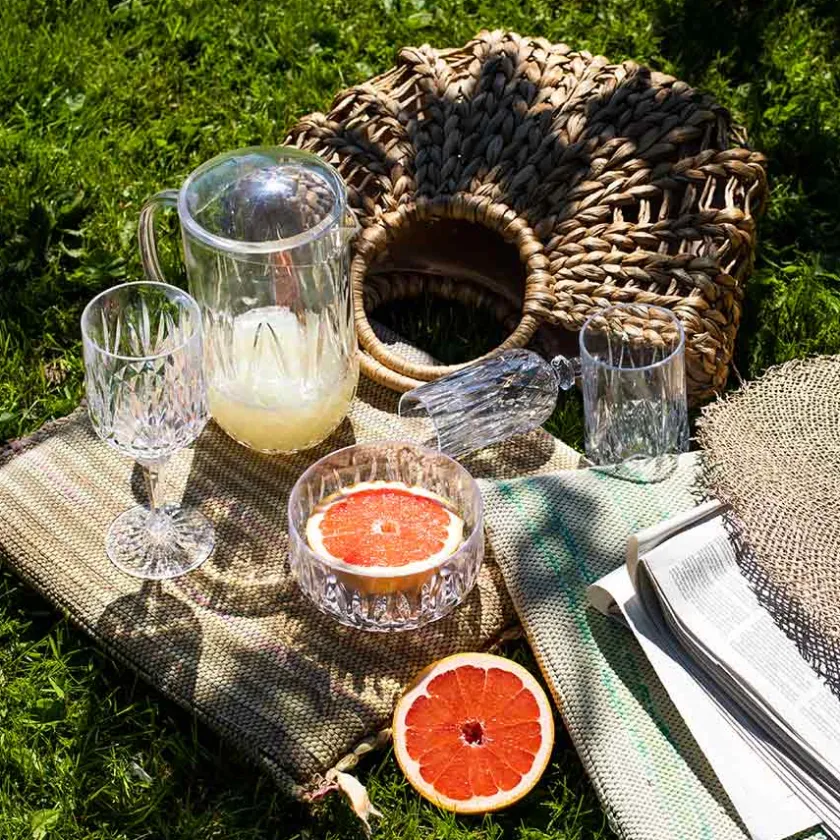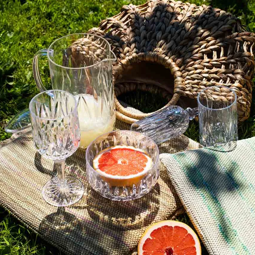 Vannmugge i akryl fra det nydelige sommerserviset Klar fra Christiania 1739. Mugger er lett av vekt og perfekt å ta med seg ut i hagen eller balkongen på en varm sommerdag.