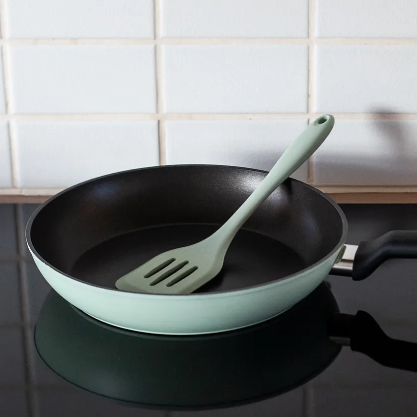 Plus Stekespade i lys grønn silikon er det ideelle redskapet for deg som elsker å lage mat med stil og presisjon. Denne fleksible og varmebestandige stekespaden er spesielt designet for bruk i non-stick stekepanner – den riper ikke belegget og gjør steking enklere og tryggere. Silikonmaterialet gir deg godt grep og fleksibilitet, perfekt når du skal vende alt fra delikate pannekaker til sprøstekte grønnsaker.Den lyse grønne fargen gir et friskt og moderne uttrykk på kjøkkenet, og passer like godt hjemme som i et profesjonelt miljø. Takket være det slitesterke materialet tåler spaden daglig bruk og hyppig rengjøring – og den kan selvsagt vaskes i oppvaskmaskin.