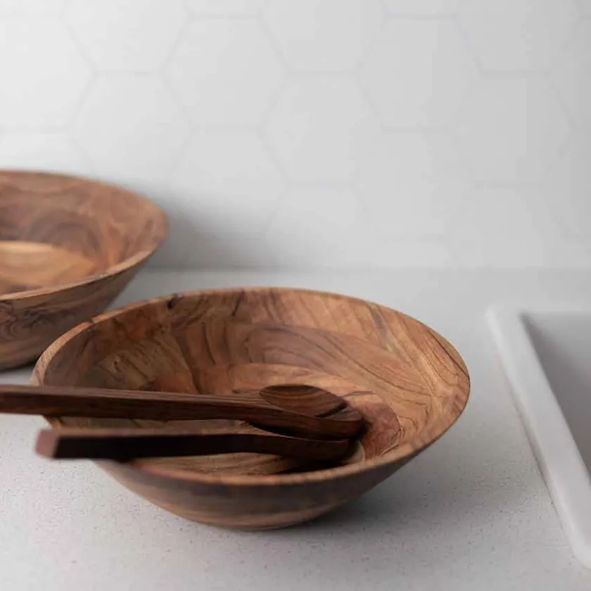 En stilren salatbolle i acacia-tre som gir en varm og naturlig følelse til borddekkingen. Perfekt størrelse for små til mellomstore salater, frukt eller snacks. Treet gir et unikt mønster, noe som gjør hver bolle helt spesiell. Kombiner den med Woods salatbestikk for en helhetlig serveringsopplevelse.