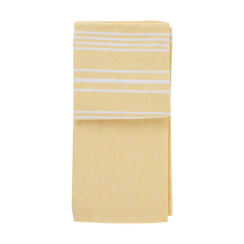 Kjøkkenhåndkle Gul Striper 2 pk lyser opp kjøkkenet med sitt glade, stripete design. Disse kjøkkenhåndklærne fra Christiania Glasmagasin er laget i 100 % bomull, noe som gjør dem både myke og svært absorberende. Perfekt til alt fra oppvask og tørking til dekorativ bruk på kjøkkenet.