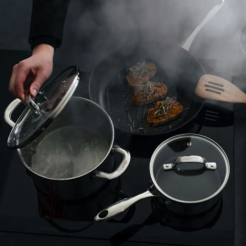 Kasserolle fra ClassicPro Premium. Med en kapasitet på 1,5 liter er denne kasserollen perfekt egnet for å tilberede små porsjoner av dine favorittretter. Fra deilige sauser til små porsjoner dampede grønnsaker og smakfulle gryteretter. Kasserollen er utstyrt med en 3-lags bunn bestående av stål med en kjerne av aluminium, som sikrer optimal varmefordeling og sørger for jevn tilberedning av maten din hver gang.