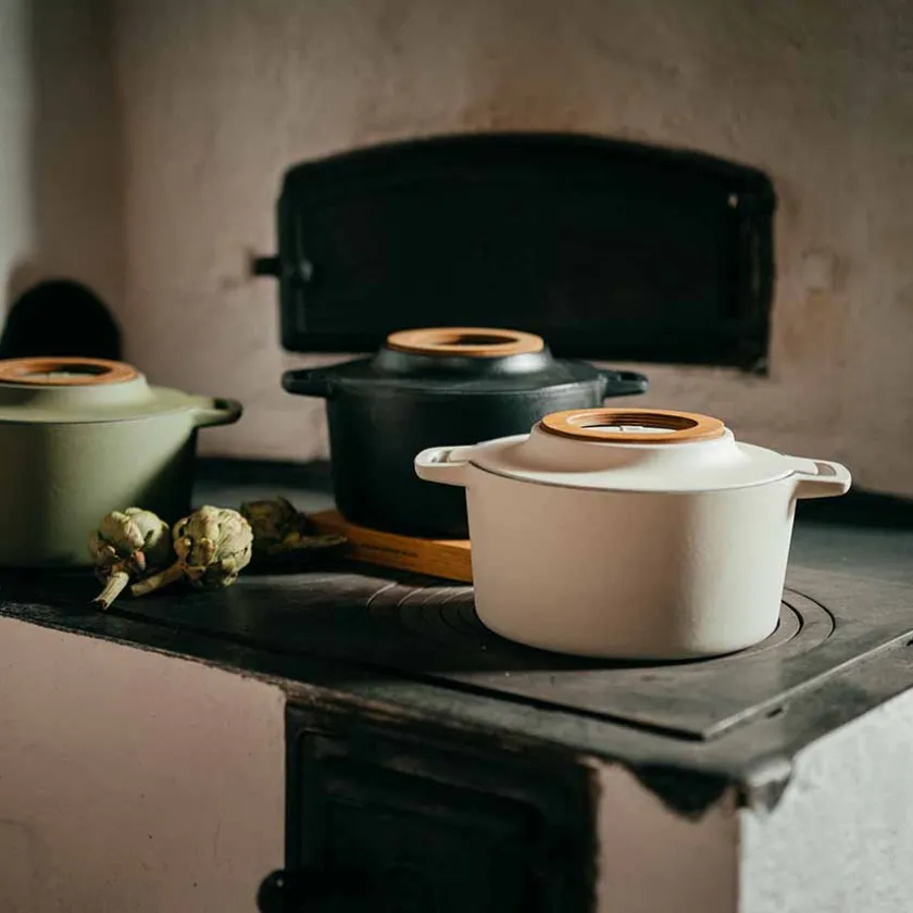 - Praktiske bjørkedetaljer – avtakbare håndtak som også fungerer som gryteunderlag