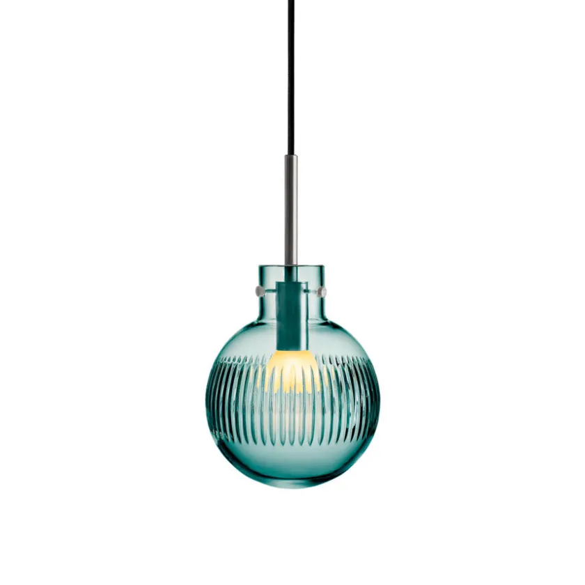 Som alle lamper fra Hadeland Glassverk, er også denne varianten munnblåst og håndslipt av våre erfarne håndverkere. Den blågrønne fargen tilfører interiøret en frisk, men harmonisk karakter som gjør lampen til et naturlig blikkfang.