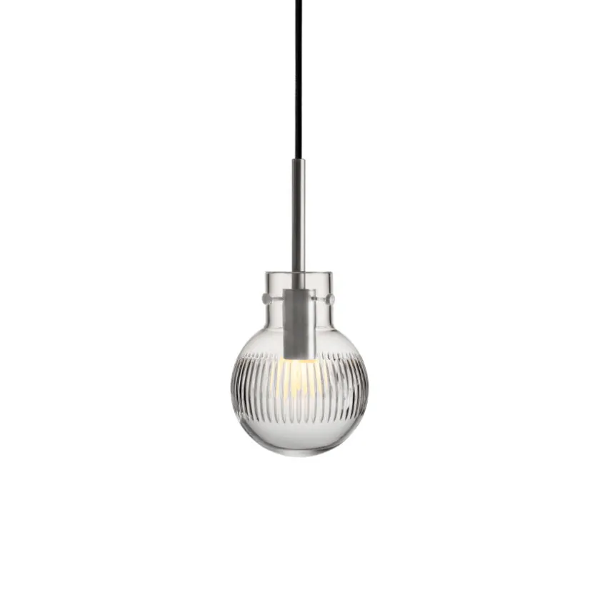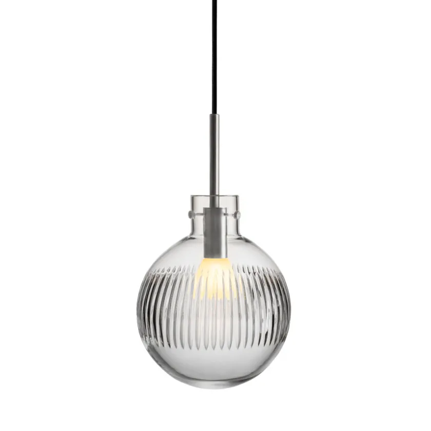 Pendellampen Krystallkule Skjær fra Hadeland Glassverk er et ekte kunstverk i lys. Basen er en helt glatt, munnblåst krystallkule, som videre foredles med et elegant, vertikalt skjær-mønster – håndslipt med stor presisjon over hele overflaten. Resultatet er en lampe som ikke bare lyser opp rommet, men også tilfører det en følelse av tidløs eleganse.