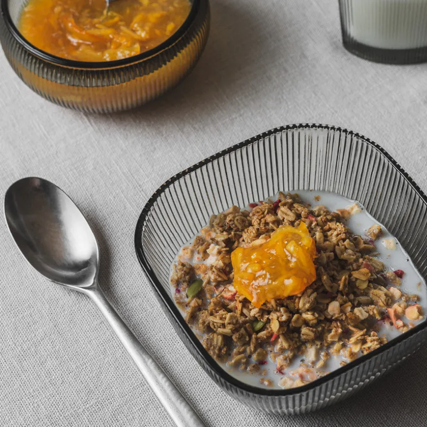 Liten bolle på 13 cm i gråfarget glass fra Hadeland Glassverk. Bollen er perfekt til frokostmüslien, dessert, eller til servering av små tilbehørsretter. Serien Siri er opprinnelig fra 1953, men har blitt relansert basert på Willy Johansons originale tegninger. Serien har fått nye deler designet av Christian Svinddal, med de samme karakteristiske rillene som går igjen på hvert produkt.