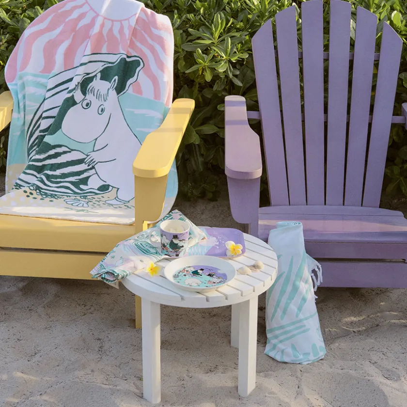 La sommerens lette stemning fylle kjøkkenhylla med Mummikopp 30 cl – Stranddag, en del av årets sommerkolleksjon fra Arabia. Denne stemningsfulle koppen inviterer deg med til Mummitrollets verden, hvor bølger, sol og strandliv skaper en varm og nostalgisk følelse i pastellfarger som turkis, lilla, rosa og beige.