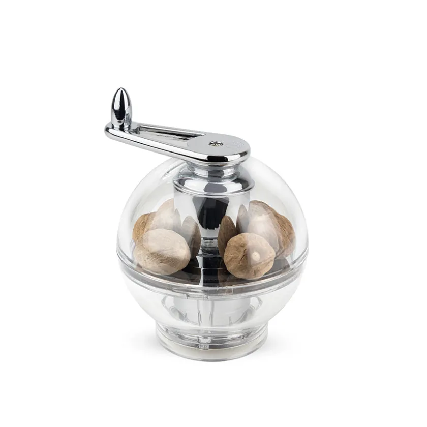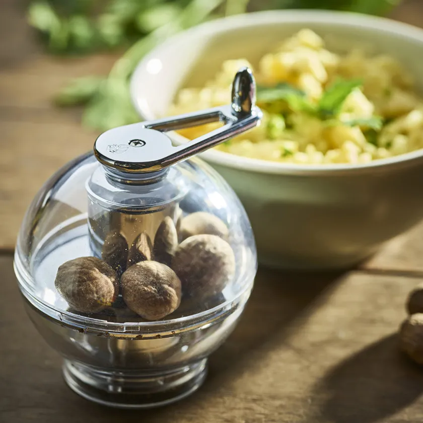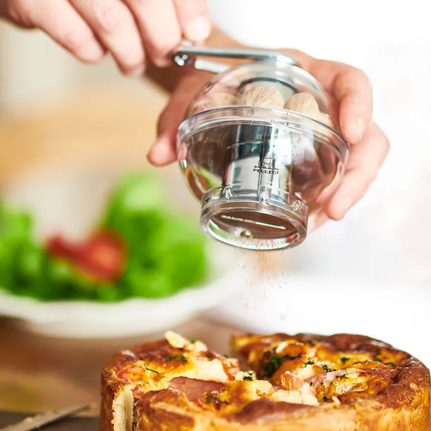 Tidore er en kompakt muskatnøttkvern laget i klart akrylmateriale som gir full oversikt over innholdet. Kvernen har et fjærbelastet metallgitter som holder nøtten på plass og maler presist ved hvert dreiegrep. Perfekt til pasta, potetretter eller baking der fersk muskat gir en ekstra dimensjon. Praktisk, elegant og enkel å bruke, akkurat slik Peugeot er kjent for.
