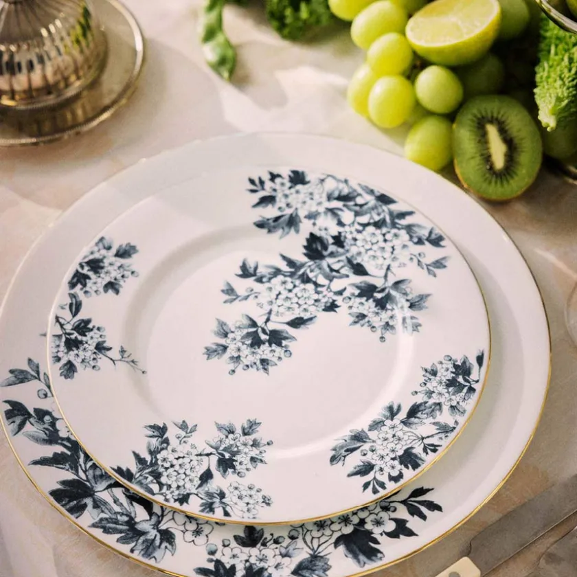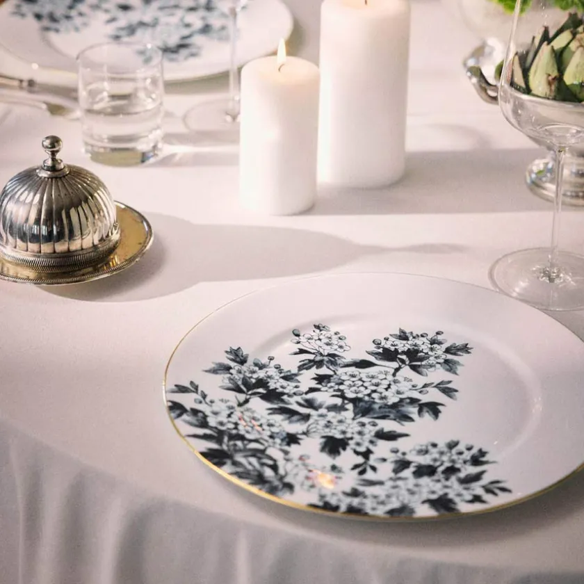 Med et moderne antrasittfarget design fra ByTimo er denne middagstallerkenen både elegant og tidløs. Antrasittfargen gir borddekkingen et sofistikert uttrykk, og blomsterdetaljene i kombinasjon med gulldekor gjør denne tallerkenen til et eksklusivt valg. Laget i holdbart benporselen som tåler daglig bruk.