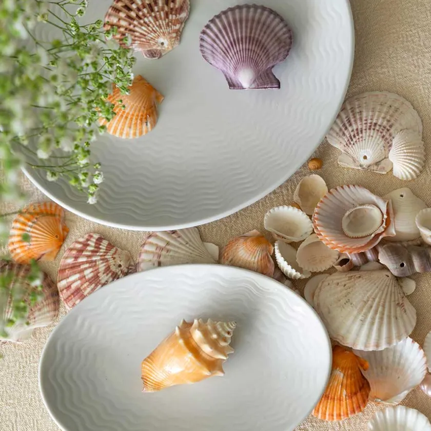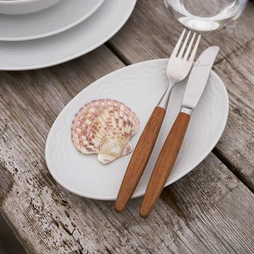 Oval asjett fra Bølge Hvitt – et porselenservise fra Porsgrunds Porselænsfabrik. Asjetten måler 19 cm og er perfekt som sidetallerken eller til servering av små porsjoner og tapas. Bølge-serviset er inspirert av Porsgrund Porselens historie og hvordan porselenet ble fraktet med båt over havet for over 100 år siden.
