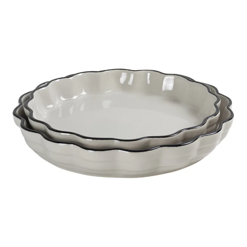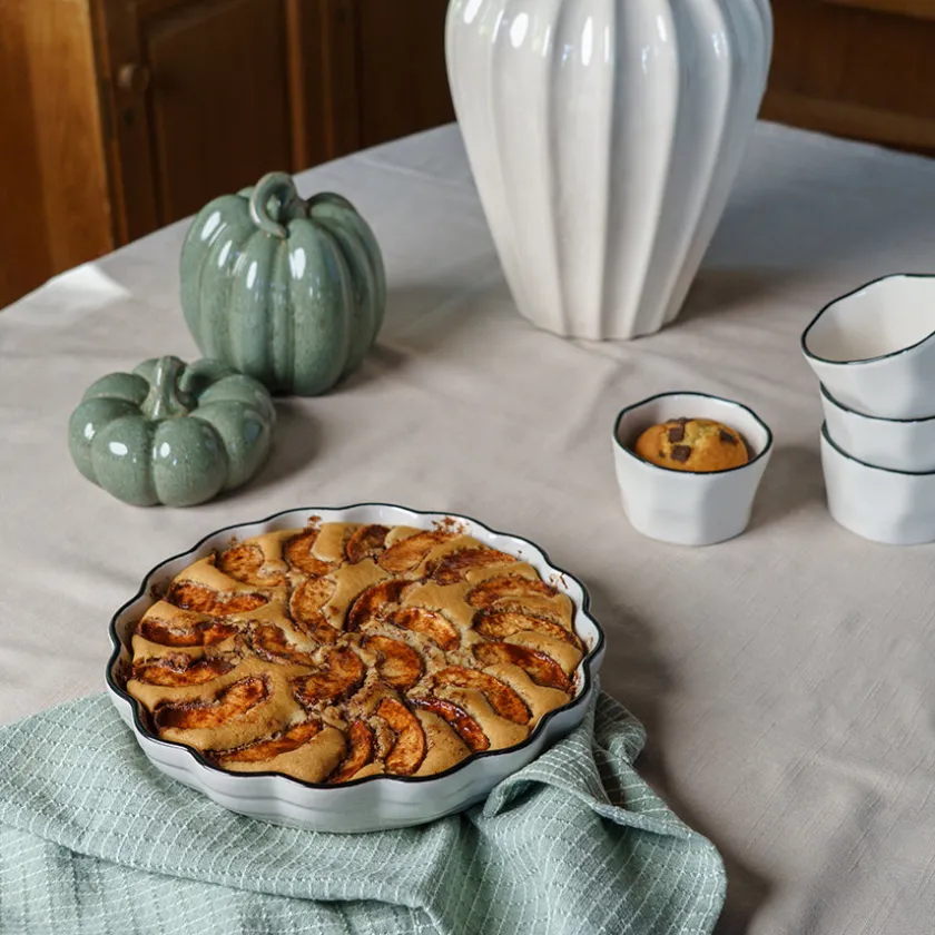 Formene er laget i slitesterk keramikk og tåler temperaturer fra -18 °C til +230 °C, noe som gjør dem svært allsidige. Bruk dem rett fra fryseren til ovnen – eller varm opp restene i mikrobølgeovn. Etter bruk kan de enkelt rengjøres i oppvaskmaskinen. Den kremfargede glasuren med svart kant gir formene et moderne og stilrent uttrykk, ideelt for servering rett på bordet.