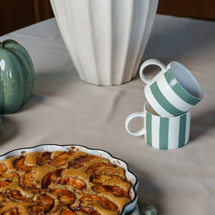 Dette stripete kruset med horisontale grønne striper fra Fall Collection kombinerer nordisk enkelhet med leken design. Med en kapasitet på 280 ml er det perfekt for både morgenkaffe, kveldste og små hverdagsøyeblikk – alene eller sammen med gode venner.