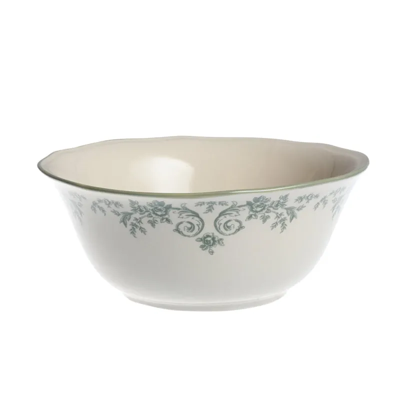 Skålen på 16 cm med grønt vintage-print er et vakkert og praktisk tillegg til Fall Collection. Perfekt til frokostblanding, salat, snacks eller dessert. Den dekorative kanten og blomsterprintet gir en klassisk, landlig følelse.