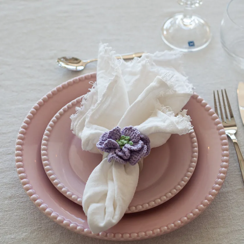 Løft borddekkingen med dette dekorative settet med serviettringer i porselen med blomster i hvit og lilla. Serviettringene er ideelle til vår- og sommerbord, påske, dåp, konfirmasjon eller hyggelige sammenkomster ute og inne. De tilfører et friskt og blomstrende uttrykk til både nøytrale og fargerike servietter, og er med på å skape en personlig og gjennomført stil.Serviettringene kommer i en praktisk 2-pakning og er enkle å bruke – bare rull sammen servietten og før den gjennom ringen. Dekoren sitter godt, og gir et delikat blikkfang som vil imponere gjestene.