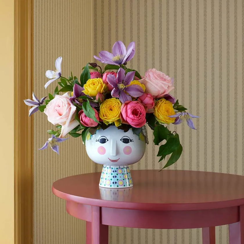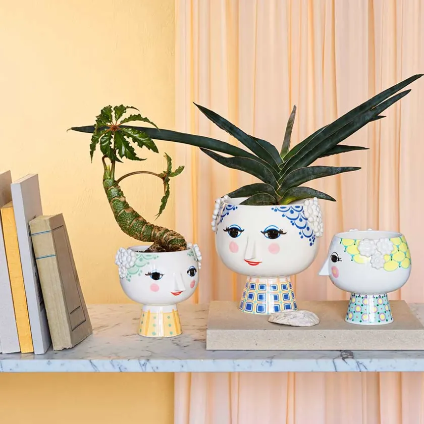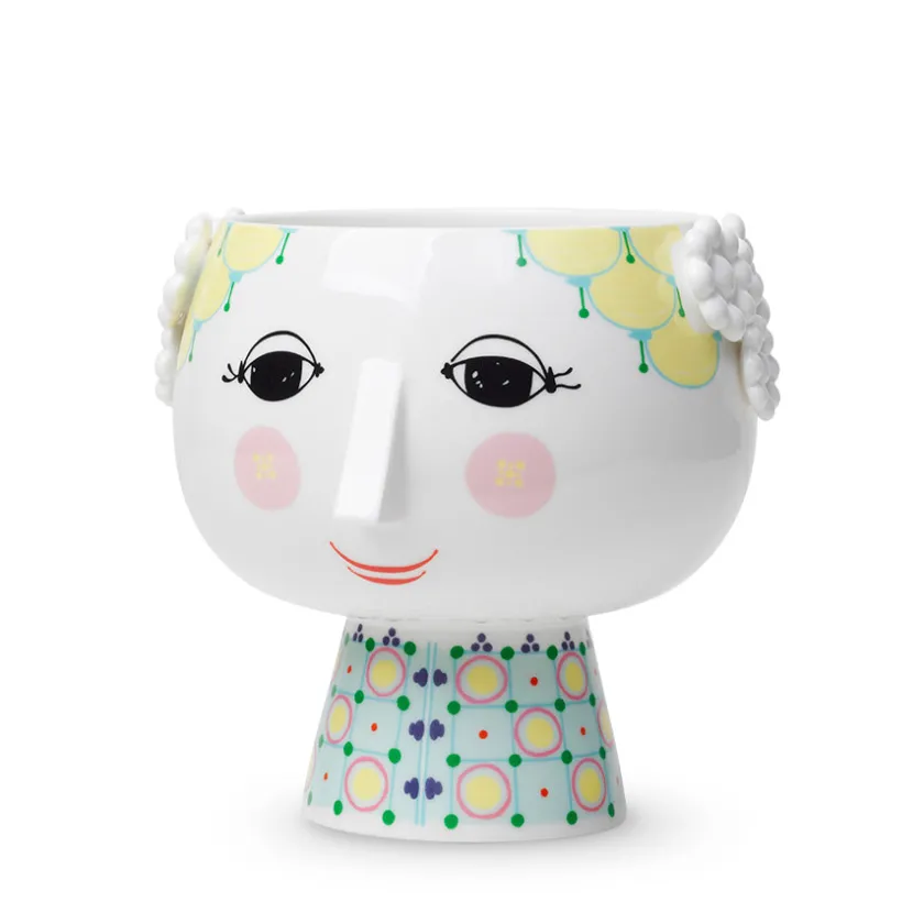 Potteskjuler i et retro uttrykk fra Bjørn Wiinblads flotte serie Eva. Tilfør et snev av 70-tallsnostalgi med denne stilfulle potteskjuleren med motiv av et kvinneansikt. Den kan fylles med alt fra krydderurter til lyng, vakre blomster eller trendy kaktuser. Potteskjuleren måler 14,5 cm i høyden og 15,5 cm i diameter.