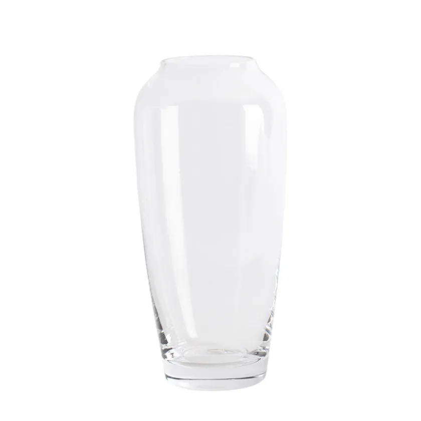 Flott kurvet vase fra serien Home fra Christiania 1739. Vasen i glass er 19 cm høy og finnes også i to mindre størrelser. Fyll vasen med vakre buketter av blomster eller strå som pynter opp et hvert rom.