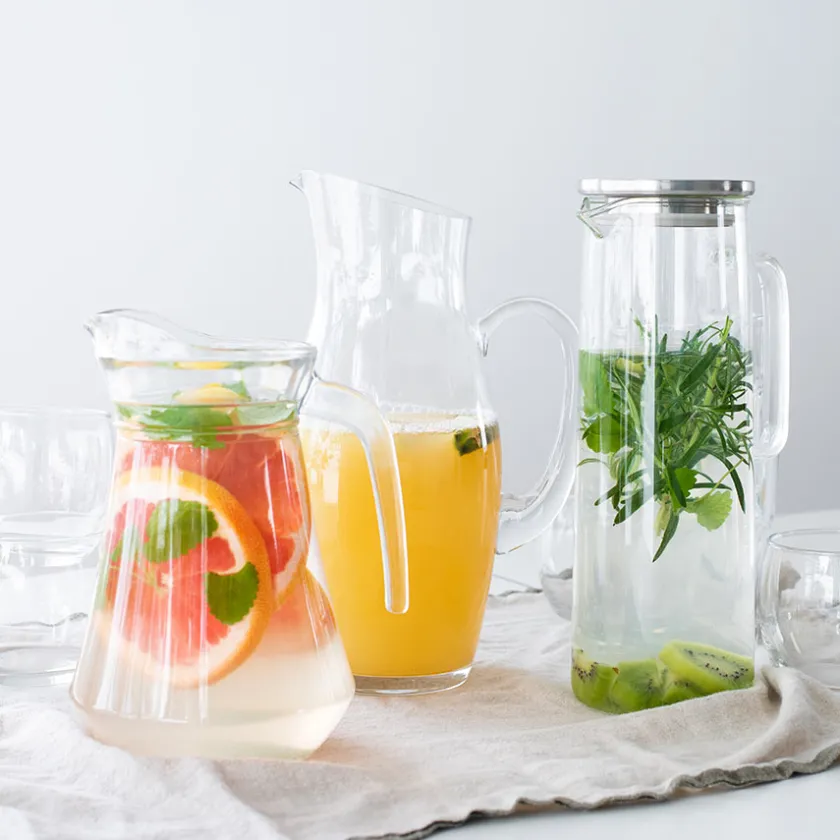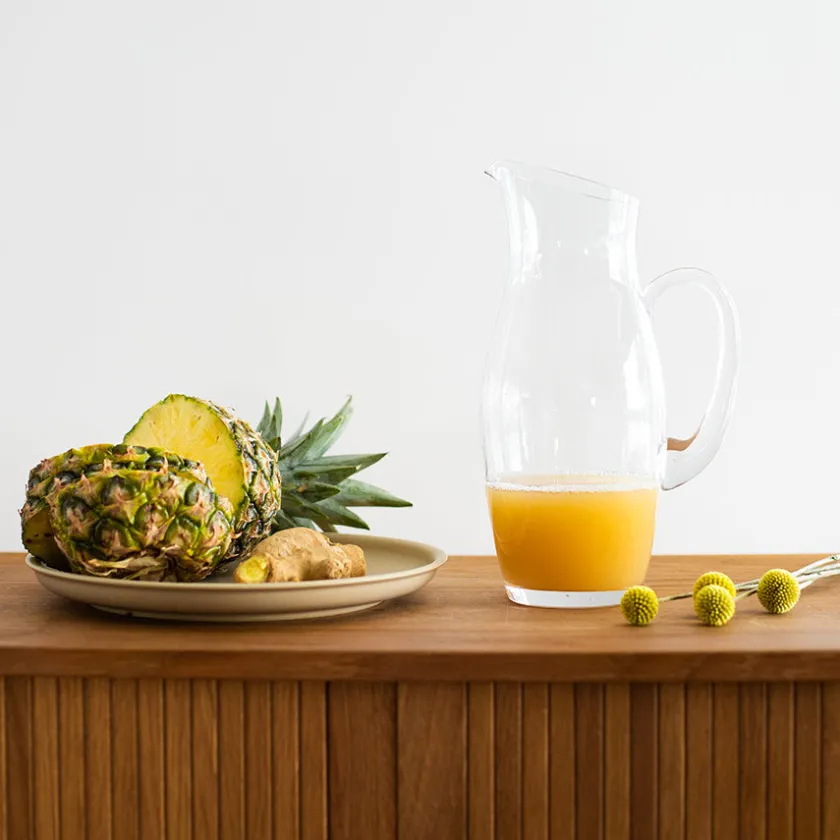 Mugge fra Christiania 1739s serie Napa som består av lekre glassmugger. Muggen rommer 1,6 liter og er perfekt til å servere vann eller annen frisk drikke, med praktisk tut som gjør det enkelt å skjenke drikken i glasset. Det stilrene utseende på vannmuggen kan kombineres med alle typer serviser og drikkeglass.