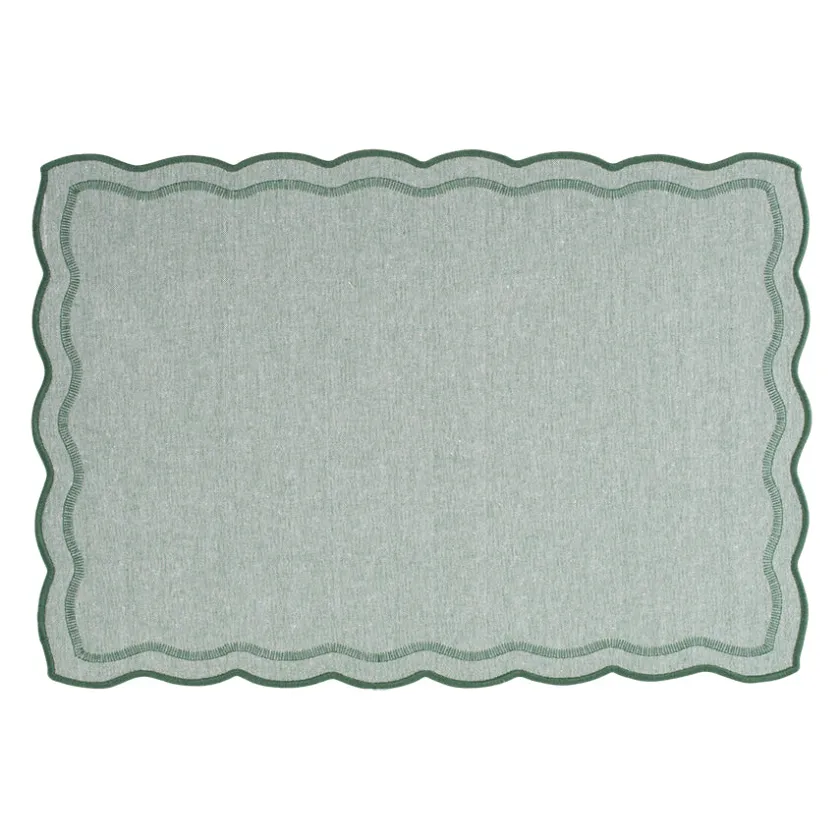 Dekkebrikke fra Christiania Glasmagasin i en grønn farge som gir bordet et naturlig og friskt uttrykk. Laget i 100 % bomull og designet i en dempet, grønn tone som gir ro og balanse i borddekkingen.