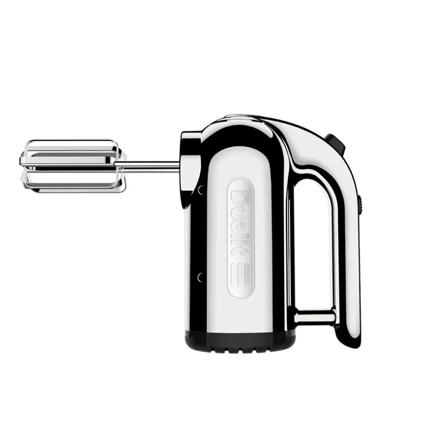 Elektrisk håndmikser i krom fra Dualit. Håndmikseren kommer med en kraftig motor på 400 watt, som i kombinasjon med det stilfulle uttrykket gjør mikseren til en klassiker på kjøkkenet. Med en innstilling på fire ulike hastigheter kan du selv justere etter hvilke typer ingredienser som skal mikses. Følges med både flat visp, ballongvisp og deigkrok. 2 års garanti.
