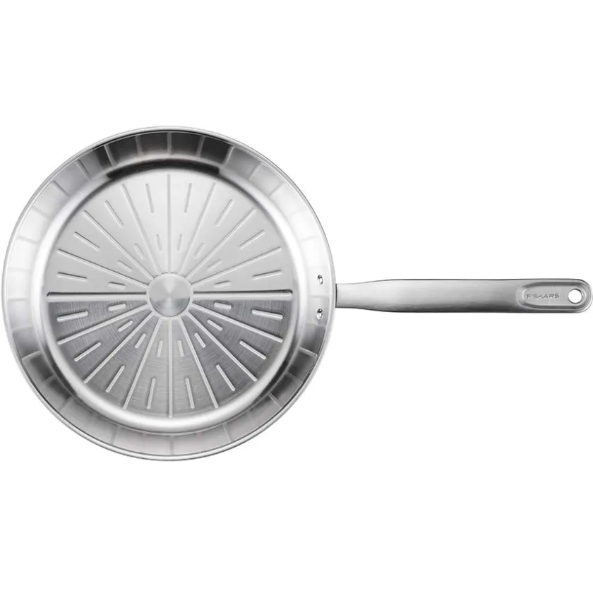 Stekepannen på 28 cm fra Fiskars All Steel Pure, er en tidløs stekepanne designet for lang levetid og overlegen ytelse. Laget av 90 % resirkulert rustfritt stål, reduserer den karbonavtrykket med hele 92 % sammenlignet med industristandard. Med en ubelagt overflate tåler den svært høye temperaturer, ideell for bruning og steking av ulike ingredienser. Aluminiumskjernen sørger for rask og jevn varmefordeling på alle platetopper, inkludert induksjon.Pannen har et ergonomisk rustfritt stålhåndtak som tåler både høye temperaturer og ovnsbruk opptil 270 °C. Takket være de nøye utvalgte materialene er pannen så å si evigvarende, med et klassisk design som forblir aktuelt i mange år. Uten belegg trenger pannen litt ekstra fett under matlaging, men den leverer enestående stekeresultater ved både lavere og høyere temperaturer.