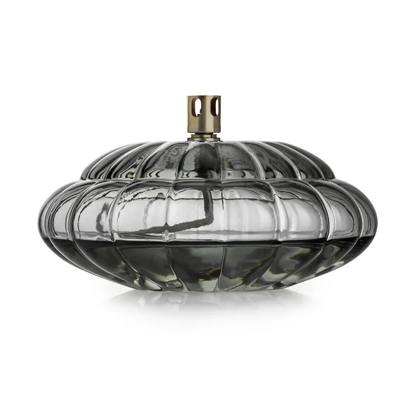 Oljelampe på 15 cm i fargen røkgrå fra hadeland Glassverk og serien Aurora. Med et optisk glass og en delikat gråtone skaper oljelampen en stilrik og avslappende atmosfære til stuen. Oljelampen er et smykke i seg selv når den ikke er tent, og gjør seg flott til de ulike stilarter. Olje kjøpes separat.