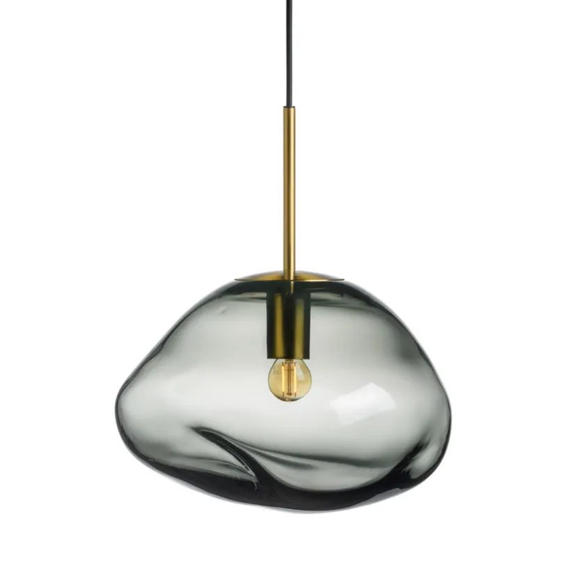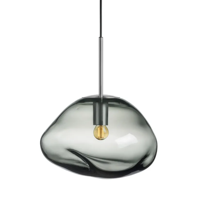 Hver lampe er munnblåst og har en unik, organisk form som oppstår når glasset formes for hånd mens det ennå er varmt. Dette gir hver kuppel sitt eget særpreg og gjør hver lampe til et lite kunstverk. Den røkgrå nyansen passer perfekt sammen med de øvrige fargene i Crystal Stone-kolleksjonen og gjør det enkelt å skape en helhetlig stil.