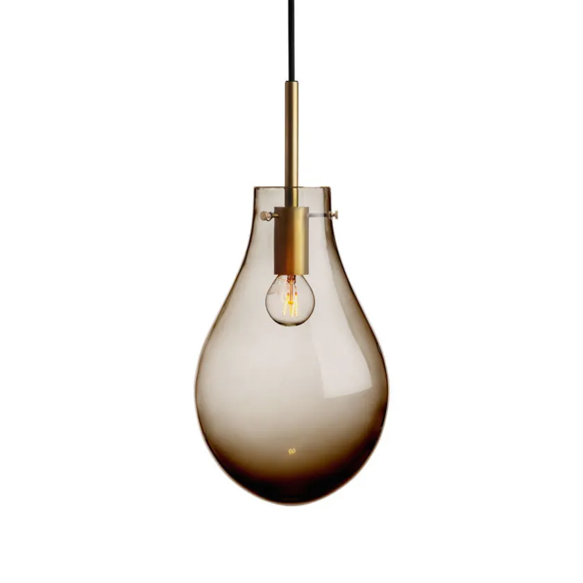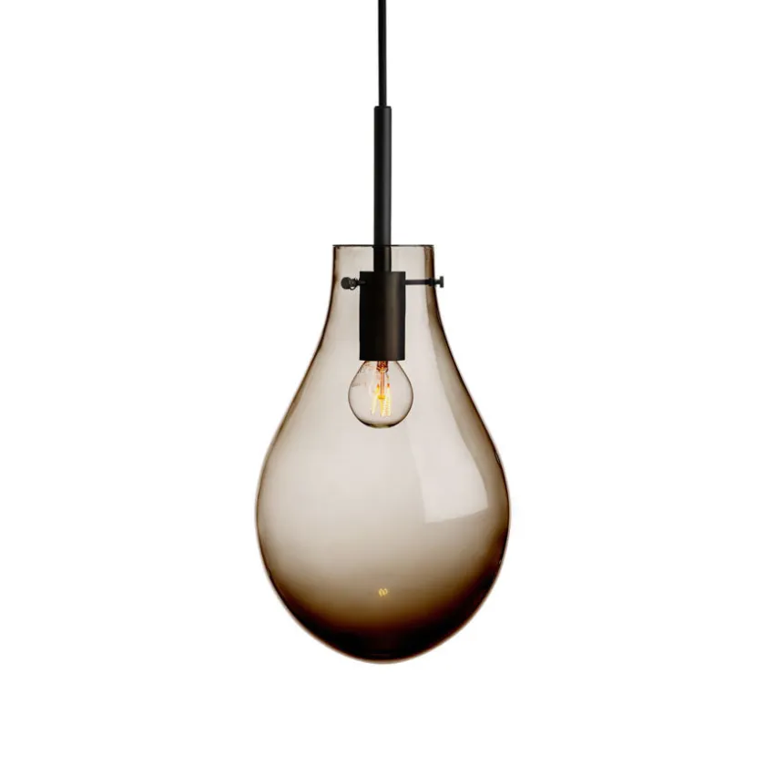 Dråpe Kakao Glatt kombinerer enkelhet og varme i et tidløst design. Den munnblåste glasskuppelen, i en dyp og rik kakaofarge, gir et mykt og behagelig lys som skaper en lun atmosfære i rommet. Den glatte overflaten fremhever glassets naturlige glans og gir lampen et rent, elegant uttrykk.