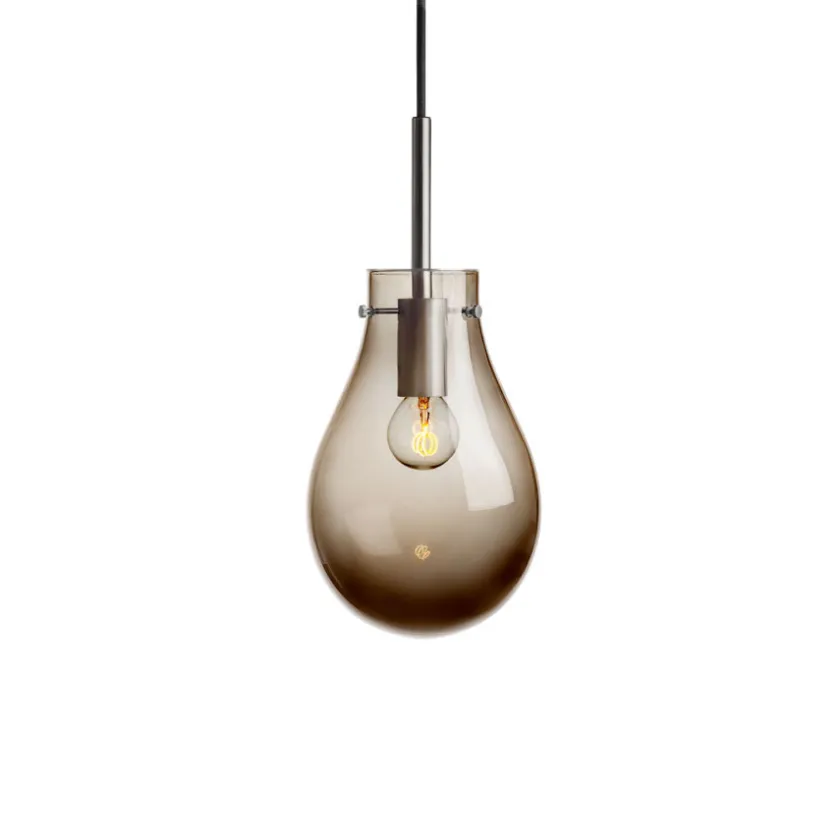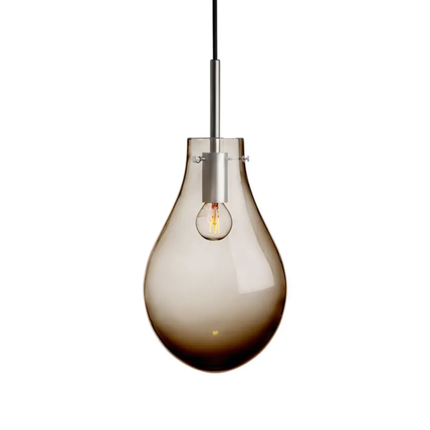 Dråpe fungerer like godt som et enkeltstående blikkfang eller i en klynge for en mer dramatisk effekt. Hver lampe produseres på Hadeland Glassverk etter 250 år gamle teknikker, der erfarne håndverkere munnblåser og håndsliper hvert eksemplar, noe som gjør hver Dråpe unik. Designet av Lina Rincon, forener lampen klassisk glasshåndverk med et moderne, minimalistisk formspråk. Lyskilde medfølger ikke – vi anbefaler en E27 LED-pære som fremhever glassets varme nyanser. Dråpe Kakao Glatt er et stilsikkert valg for den som ønsker varig kvalitet og ekte håndverk i hjemmet.