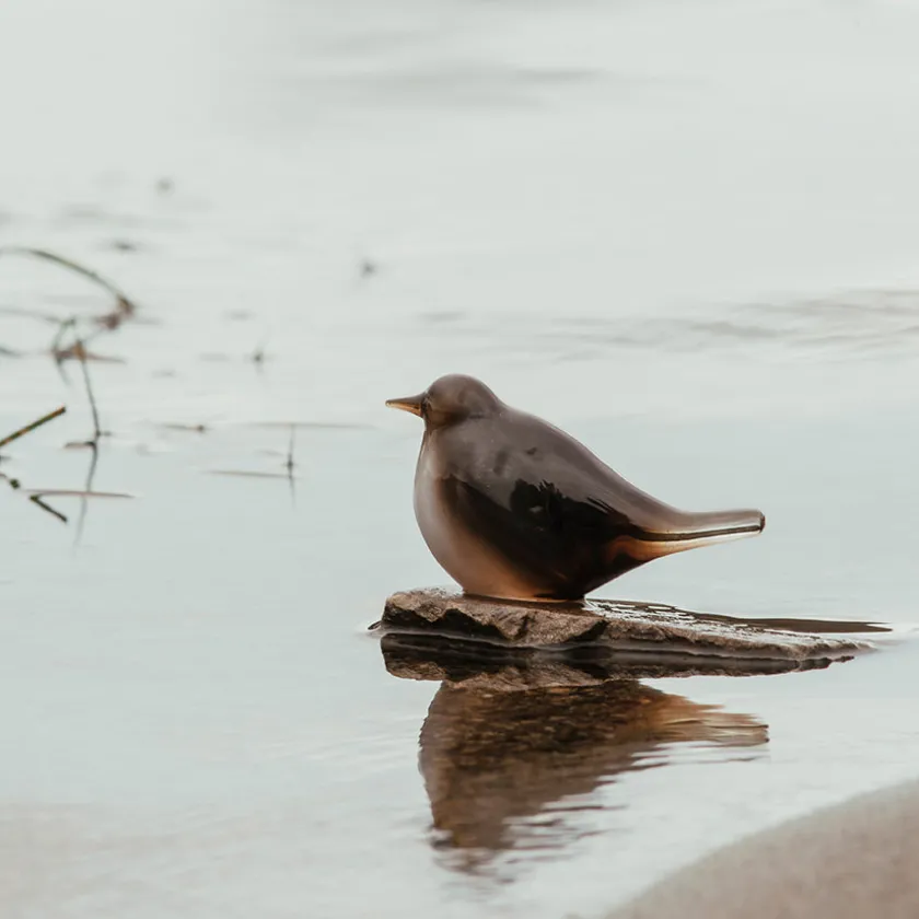 Fossekall i glass fra Hadeland Glassverk. Fossekallen er Norges nasjonalfugl og en livskraftig skapning som trives i hele vårt langstrakte land. Glassfiguren er munnblåst og hver eneste en er unik med små forskjeller i formen, også fargen oppleves forskjellig og påvirkes av omgivelsene. Fossekallen i munnblåst glass er designet av Maud Gjeruldsen Bugge.