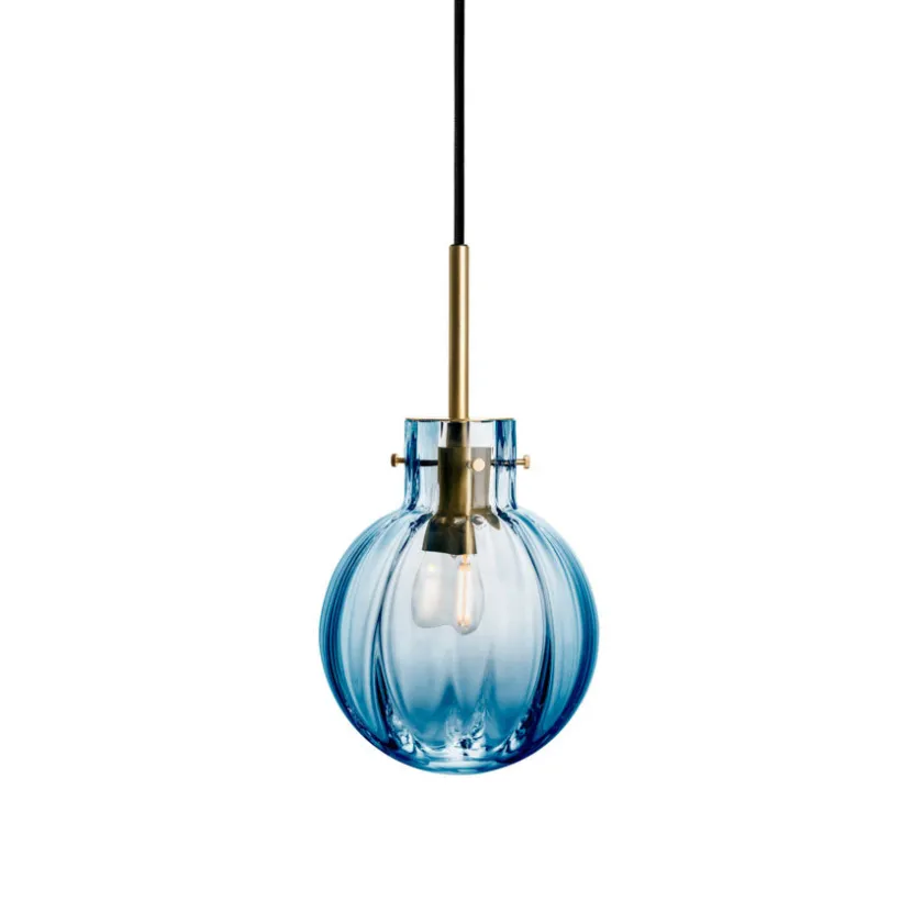 Taklampen fra Hadeland Glassverk er et utsøkt eksempel på tradisjonelt norsk håndverk og tidløst design. Lampen kjennetegnes av sitt vakre optikkmønster, som oppstår når den varme glassmassen presses ned i en ring med stående lameller. Dette skaper dype strukturer i glasset, før kulen formes videre i en glatt granittform. Resultatet er en krystallkule med en jevn, ytre overflate og en bølget, indre kjerne som fanger og reflekterer lyset på en fascinerende måte.