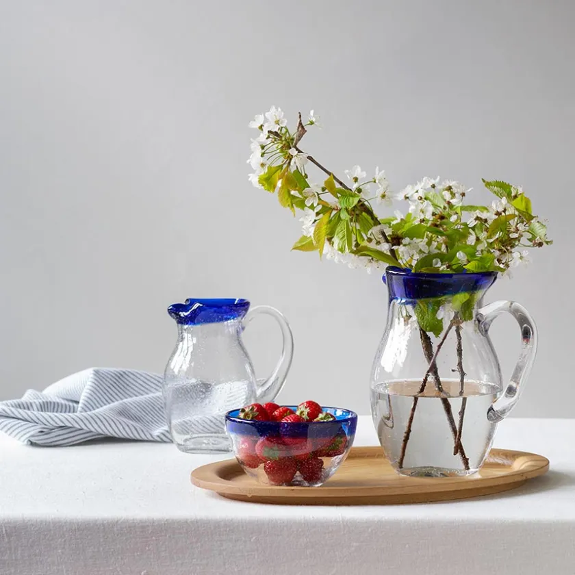 Liten mugge fra Hadeland Glassverk og den håndlagde serien Skjærgård designet av Maud Gjeruldsen Bugge. Dekk opp sommerbordet med den forfriskende serien Skjærgård som prydes av et uttrykk inspirert av nettopp den norske skjærgården. Muggen er fremstilt med bobler i glasset og omkranset med en blå rand. Serien håndlages, og det vil derfor forekomme noen ulikheter som gjør hver del unik. Muggen vaskes for hånd.