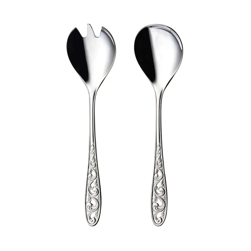 Kristin Salatsett består av en salatskje og gaffel som kombinerer praktisk funksjon med elegant design. Perfekt til å løfte enhver servering.
