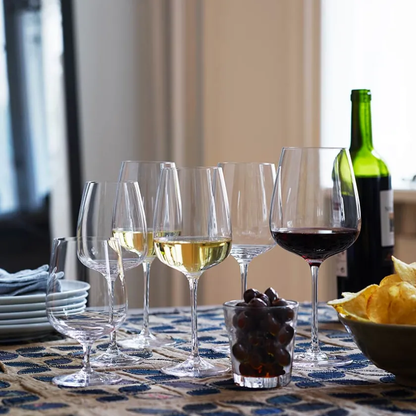 Serien Bouquet er designet for det moderne måltidet med smak og hygge i fokus, i tillegg til korrekt servering av vin. Det enkle og trendy glassdesignet står fint på festbordet i et hvert hjem, så vel som i hverdagen, og tåler å bli tatt frem ofte. Den store overflaten i glasset utfolder rødvinens duft- og smaksnyanser, og gir en bedre vinopplevelse. Dette glasset egner seg til de fleste typer rødvin.Glasset kan vaskes i oppvaskmaskin på opptil 55 °C.