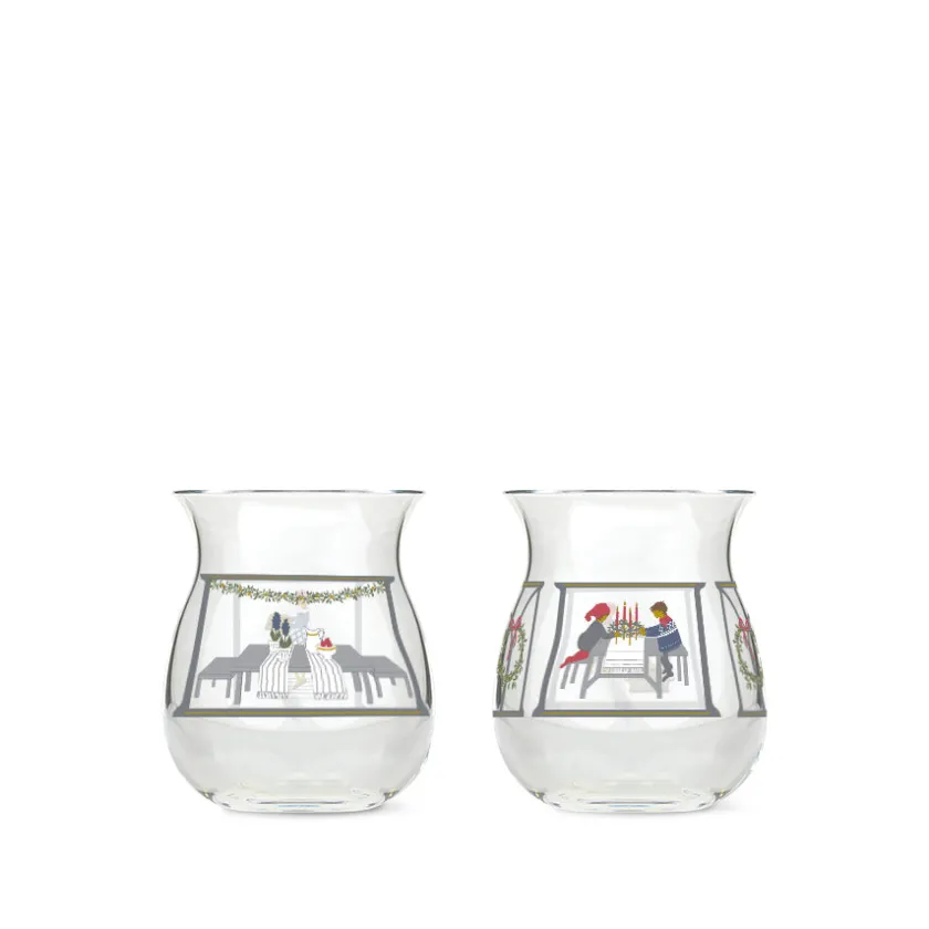 Julelyslyktene fra Holmegaard Christmas for 2024 er et sett med to nydelige telysholdere som bringer julestemningen inn i hjemmet. Med en høyde på 7,5 cm passer disse lyslyktene perfekt til å skape en varm og koselig atmosfære når telysene tennes og flammen kaster vakre skygger over de nostalgiske julemotivene. Jette Frölichs kunstneriske papirklipp er overført til glasset og viser ulike motiver fra hennes nostalgiske juleunivers, med inspirasjon fra det tradisjonsrike julekjøkkenet.