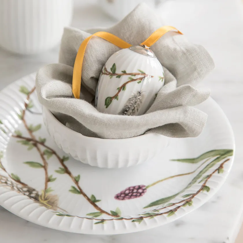 Frokosttallerken fra Kählers servise Hammershøi Spring. Serviset har i tillegg til de karakteristiske rillene fra Hammershøi-serviset, fått håndmalte vårlige tegninger av grener med knopper som springer ut. Serviset inkluderer også krus og eggeglass som skaper en flott ramme rundt påskefrokosten. Det vakre vårserviset kan vaskes i oppvaskmaskin.