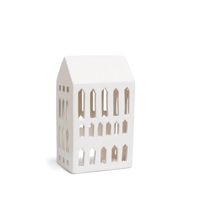 Lyshus utformet som en kirke fra Kählers flotte lyshusserie Urbania. Det vakre lyshuset er inspirert av designet til en kirke, og når lys tennes vil det tynne hvitglaserte porselenet omtrent få et gjennomsiktig utseende når lyset skinner ut av de utskårede vinduene. Kombiner gjerne lyshuset med flere av de fantastiske bygningene fra Urbania og dann en liten skinnende porselensby. Lyshuset måler 18 cm x 10 cm.