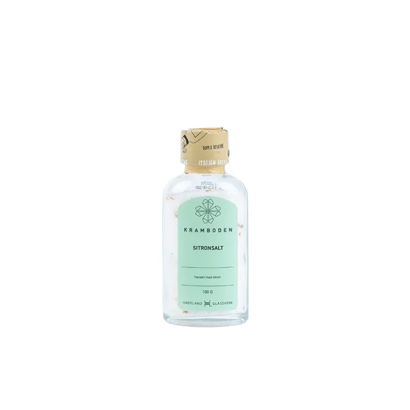 Salt med sitron på 100 gram fra Kramboden. Sitronsalt er utsøkt til blant annet reker, skalldyr og fiskeretter. Inneholder havsalt og 2% sitron, oppbevares tørt. Unngå direkte kontakt med sollys.