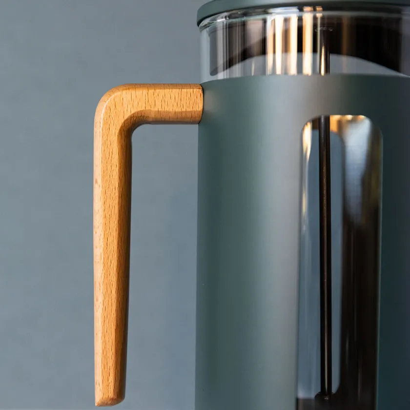 Glassbegeret tåler oppvaskmaskin. Utsiden med håndtak av bjørketre vaskes for hånd.