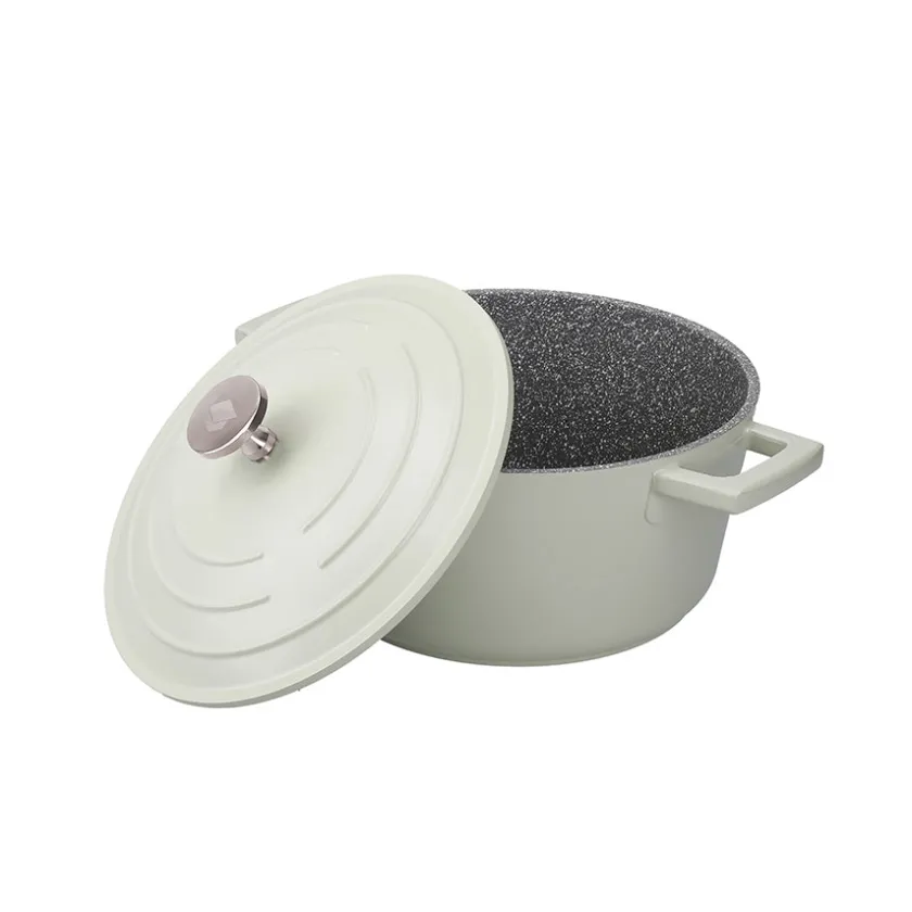 Gryte fremstilt i en stilrik mintgrønn farge fra Masterclass. Gryten er laget i støpt aluminium, som på samme måte som støpejern er et robust materiale designet for å vare, men som er betydelig lettere. Aluminium kommer med svært gode varmeledende egenskaper, slik at maten tilberedes effektivt og jevnt, på koketoppen eller i stekeovnen. Gryten er fremstilt med et robust to-lags ripesikkert belegg som kommer med sammen gode egenskaper som et non-stick belegg, og kan rengjøres i oppvaskmaskin.