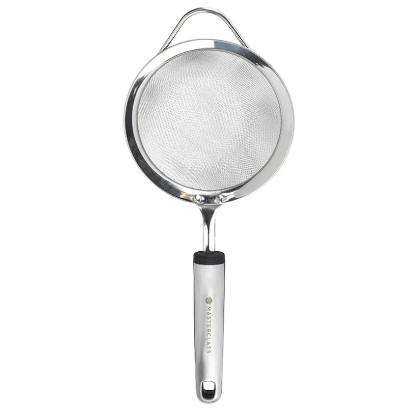 Sikt på 12 cm i rustfritt stål fra Masterclass. Sikten har et ergonomisk håndtak med et mykt grep som er designet for å passe komfortabelt i hånden og gi bedre grep. Sikten er laget av rustfritt stål og er motstandsdyktig mot lukt, flekker og smak.