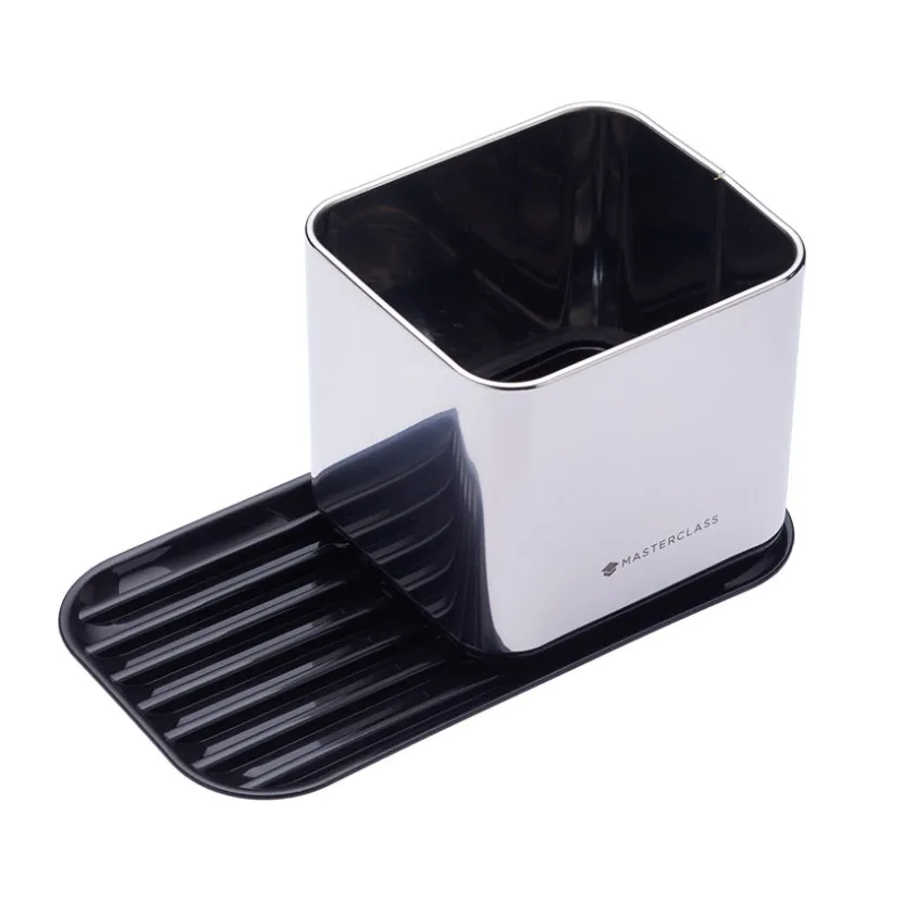 Stativ til oppvaskbørste fra Masterclass. Få det ryddig ved kjøkkenvasken med det stilfulle stativet i rustfritt stål med en speilpolert overflate. Kombiner stativet gjerne med oppvaskbørsten og oppvasksvampen med såpedispenser fra Masterclass.