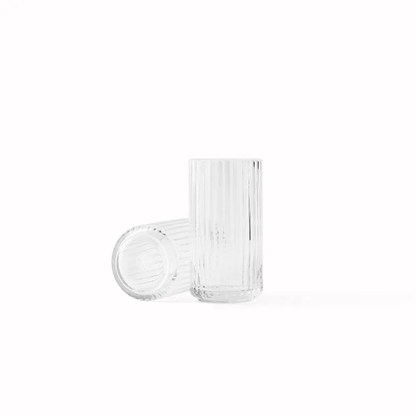 Vase på 15,5 cm fra Lyngby Porcelæn fremstilt i klart glass. Den munnblåste vasen fra Lyngby er en ekte designklassiker med sitt elegante rillemønster og stilrene form. Vasen finnes i flere farger og størrelser som elegant kan kombineres.