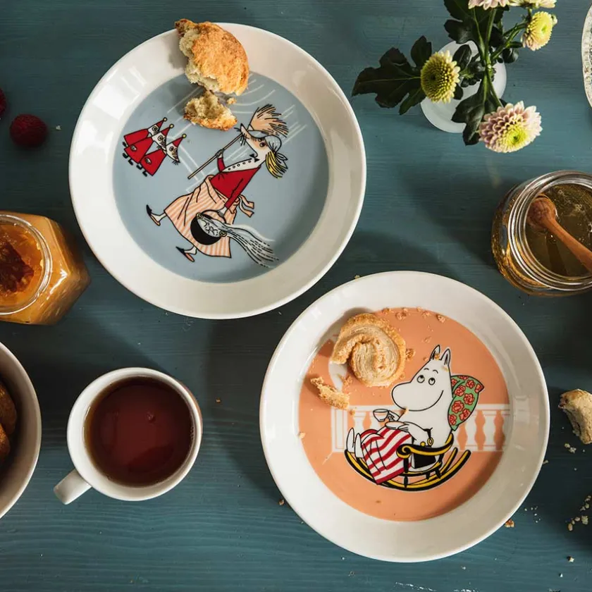 Det nyeste tilskuddet fra Mummidalen er en asjett med motiv av Filifjonka, trebarnsmoren som prøver å holde orden på livet sitt ved å ha et skinnende rent hjem, til en hver tid. Hun er i sitt ess når hun får organisere og vaske, men i hemmelighet er hun litt misunnelig på Mummimammas avslappede livsstil. Mummikoppen tåler oppvaskmaskin.
