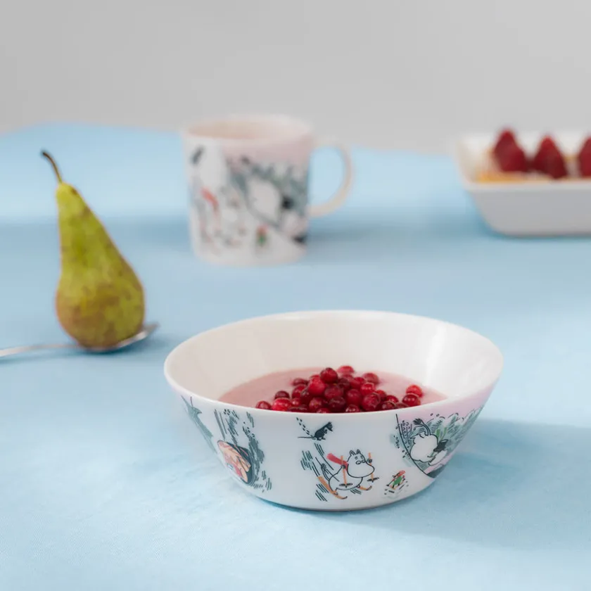 Mummi bolle fra Moomin Arabia og Aking, årets vinterkolleksjon for 2023. Årets vintermotiv følger historien fra vinterkolleksjonen for 2022, der den store vintersportsentusiasten Herr Brisk ankommer Mummidalen med sin solide vinnermentalitet. De har i år også hoppet over vinterdvalen, og Mummi er i full fart nedover på ski. Motivene er henter fra Tove Janssons opprinnelige tegneserie «Mummitrollets vintereventyr» fra 1955.