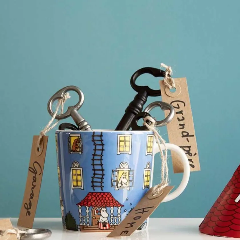 Mummikopp fra Arabia med lekent motiv av Mummihuset.Mummihuset har fått tre etasjer og en kjeller slik at det er god plass til alle gjestene som titt og ofte besøker Mummifamilien. Koppen Mummihuset er laget i anledning 70-årsjubileumet til den aller første boken om Mummifamilien, «Småtrollene og den store oversvømmelsen». De populære samleobjektene fra Arabia er ildfaste og tåler ovn og mikrobølgeovn, men må stå på rist i ovnen og ikke bakeplate. Mummikoppene kan vaskes i oppvaskmaskin.