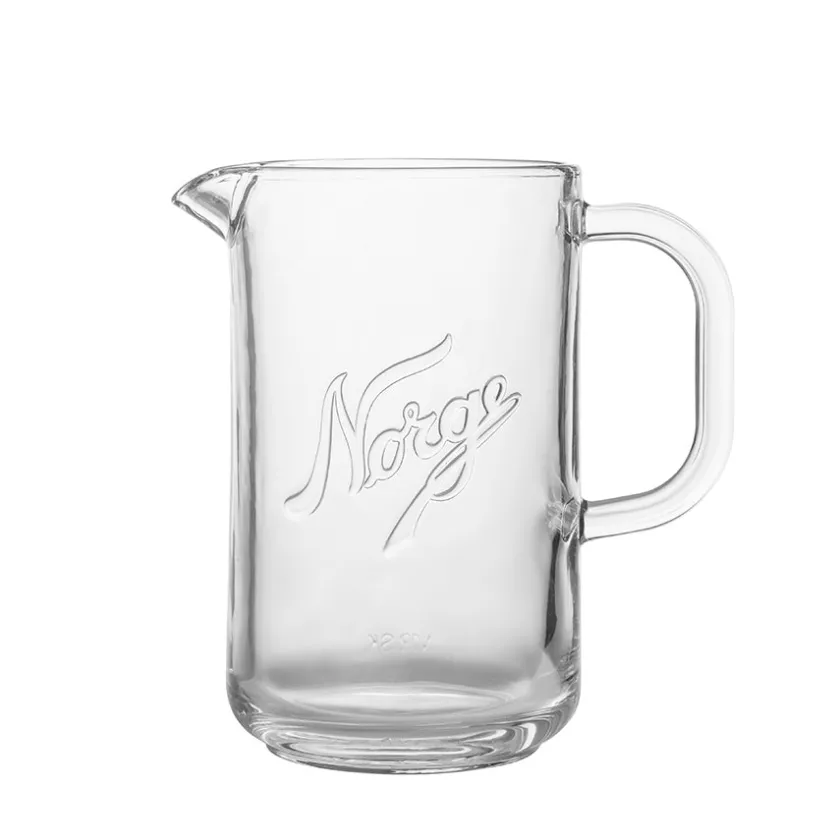 Denne stilrene glassmuggen på 1,2 liter er inspirert av det ikoniske Norgesglasset – et symbol på norske tradisjoner og håndverk. Med sin robuste form og preget Norge-logo, kombinerer den funksjonalitet med et nostalgisk uttrykk som passer like godt til hverdags som til fest.