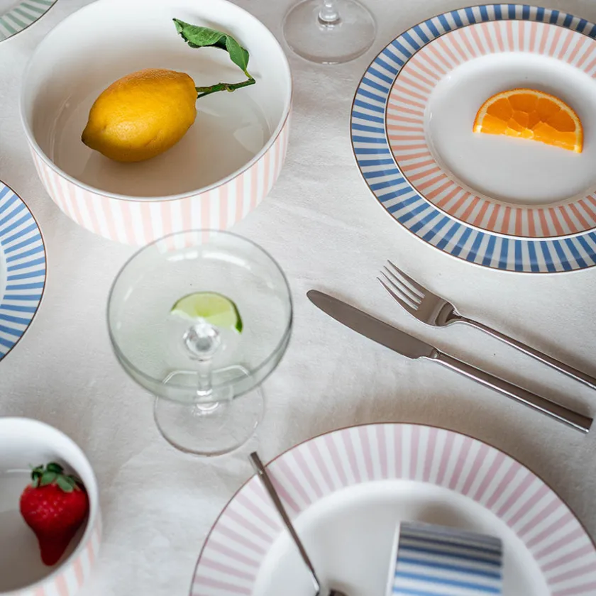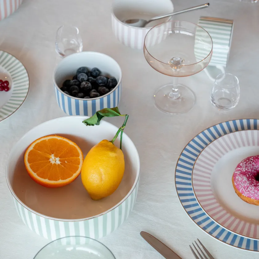 Skap et tidløst og friskt uttrykk på bordet med Abby middagstallerken i blå med gullkant. Tallerkenen har en diameter på 26 cm og er perfekt til middag, serveringsretter eller buffet. Den klassiske blåfargen og det moderne stripemønsteret gjør denne tallerkenen til et naturlig blikkfang.
