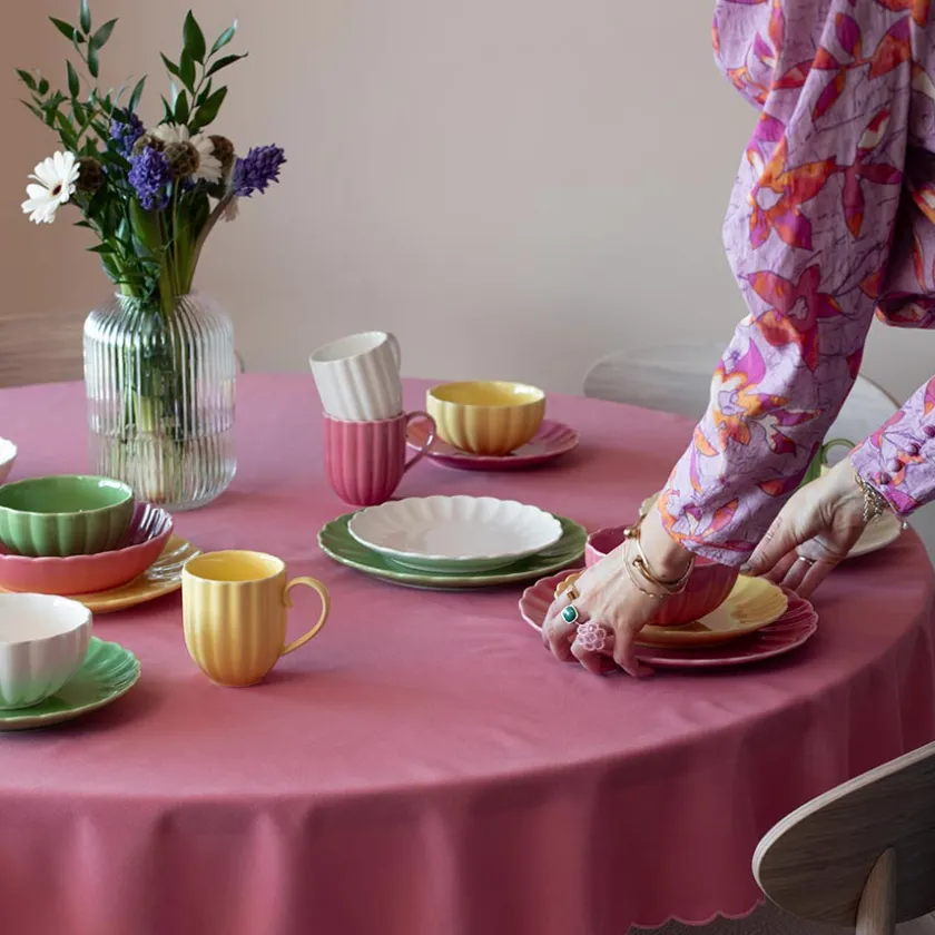 Tallerken i fargen gul fra Christiania 1739 og serviseserien Lilly. Serviset prydes av et delikat fargepalett og myke former som sammen vil danne en harmonisk og stilrik stemning på bordet. Tallerkenen er flott til frokost og lunsj, for seg selv eller i kombinasjon med flere farger fra Lilly for et dekorativt uttrykk.