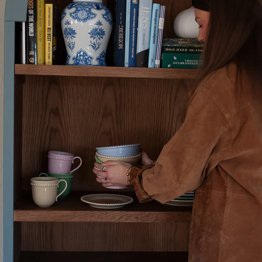Poppy skål 16 cm i dus blå er den perfekte skålen til frokostblanding, snacks eller småretter. Den dempede blåfargen og den matte overflaten gir et elegant og moderne uttrykk – en rolig kontrast til det du serverer. Skålen har en fin balanse mellom funksjonalitet og estetikk, og er laget i solid porselen.Tåler både mikrobølgeovn og oppvaskmaskin, noe som gjør den ideell til daglig bruk. Kombiner med andre produkter fra Poppy-serien i samme farge, eller miks med rosa, grønn eller beige for et mer lekent uttrykk.