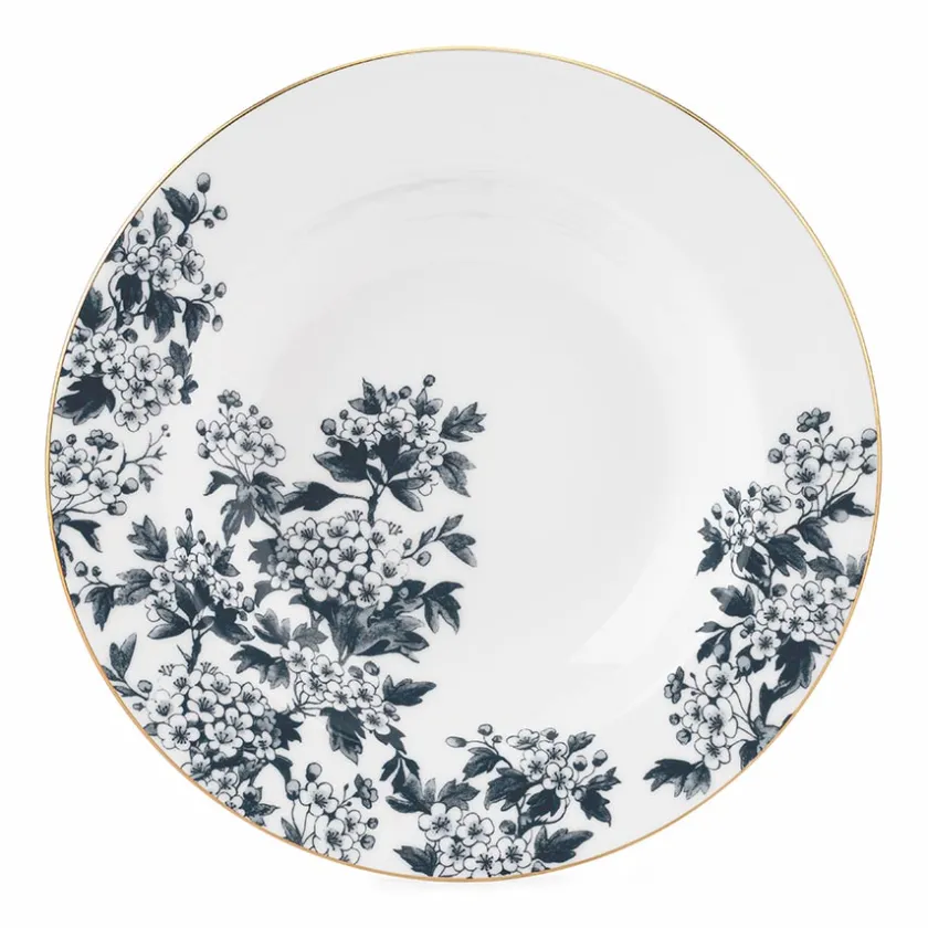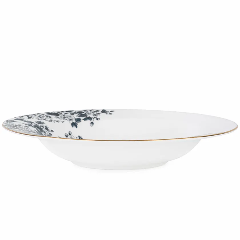 En dyp tallerken i moderne antrasitt, designet av ByTimo, som tilfører et elegant preg til borddekkingen. Denne tallerkenen er ideell for supper og varme retter, og de håndmalte gulldetaljene gir den et luksuriøst uttrykk.